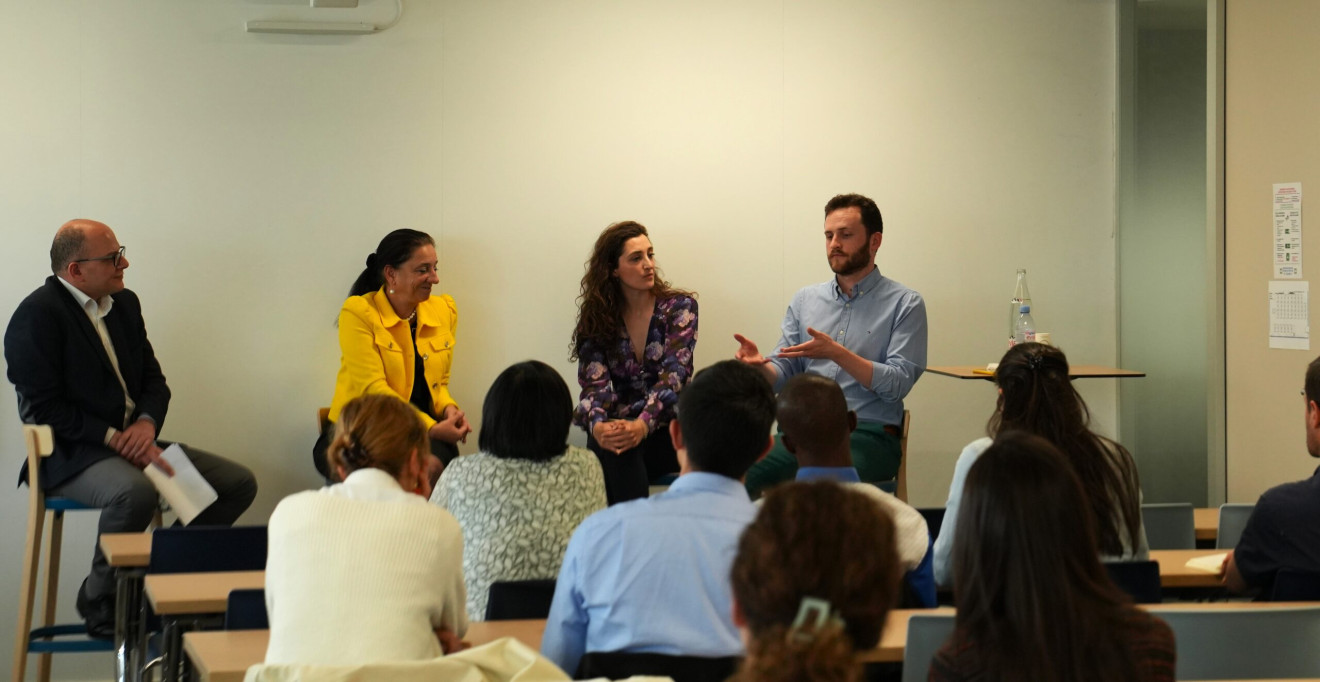 The roundtable, moderated by Messaoud Chibane (NEOMA), welcomed Isabelle Tracq-Sengeissen, Partner – EY, Laura Malucelli, Sustainable Banking Associate – Crédit Agricole CIB and Mathieu Joubrel, Chief Technical Officer – ValueCo. The panelists shared with the audience the latest developments in sustainability practices and the main challenges facing future evolution, notably issues related to measurement, regulation, harmonious implementation and the use of new technologies.
