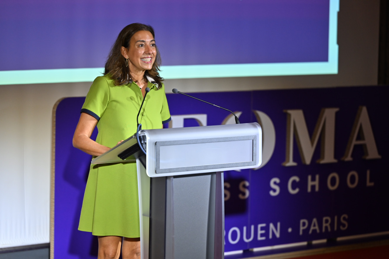Angeles Poveda Garcia, who is president of the Legrand board of directors and sponsor of the MiM class of 2023, came to the stage to convey her positive energy. She spoke of the current challenges in the world, including the ecological transition, the technological advances of artificial intelligence and the need for meaning and social cohesion. She also outlined the three assets that she believes are needed to confront these challenges: curiosity, courage and heart. ‘Curiosity is a marker of important leaders’, she said.